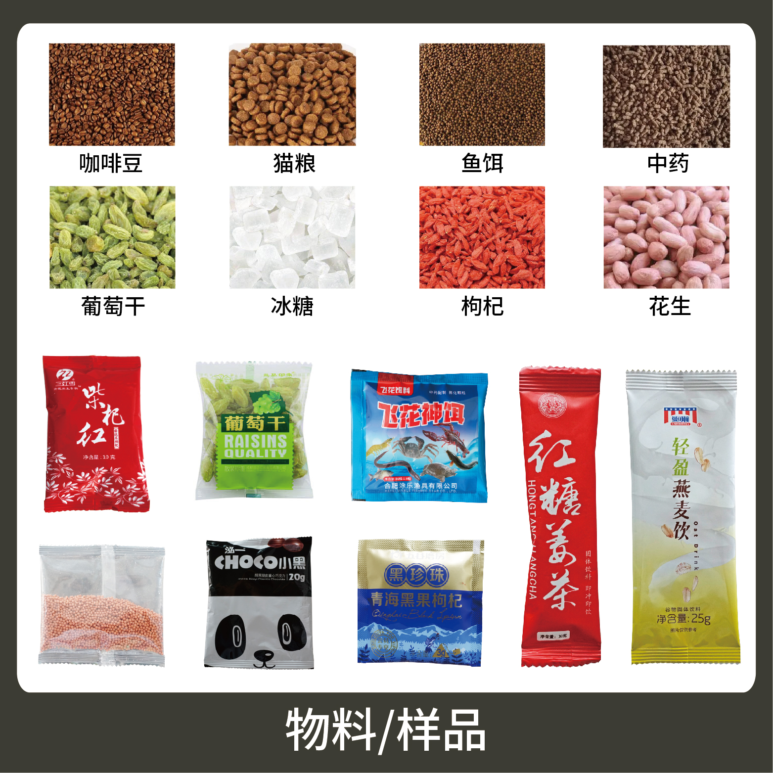 適用于食品、醫(yī)藥、化工、化妝品行業(yè)中顆粒物品的計(jì)量包裝,如:堅(jiān)果、炒貨、零食、種子、咖啡、糖果等。