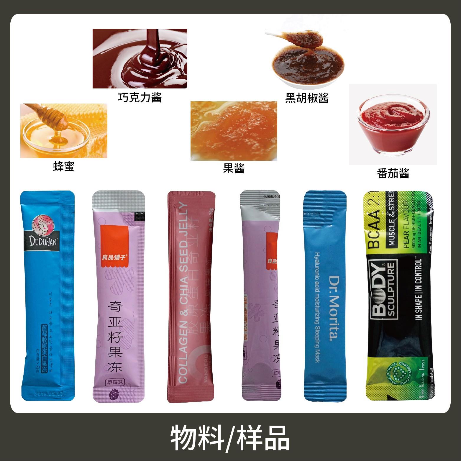 1、適用于食品、醫(yī)藥、化工、化妝品行業(yè)中液體、醬料等物品的計量包裝,如:蜂蜜、酵素、果凍、藥液、糖漿、原漿等。